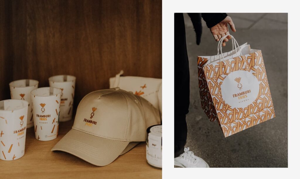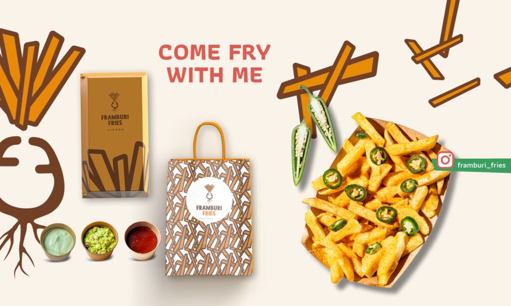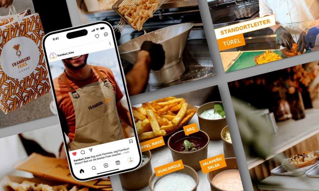 Für Framburi Fries entwickelten wir ein ganzheitliches Corporate Design, das die Marke visuell klar und konsistent positioniert. Vom Logo über die Gestaltung der App und des Bestellautomaten bis hin zu Speisekarten, Sackerl, Merchandise und vielem mehr – wir haben einen durchgängigen Markenauftritt geschaffen, der Wiedererkennung garantiert.