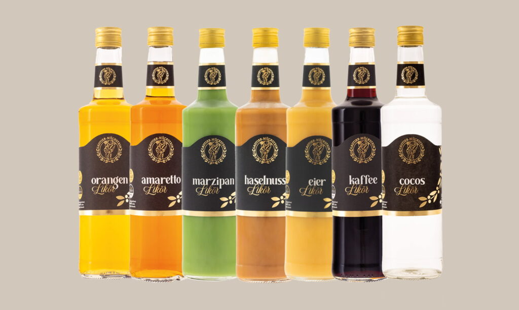 Für neue und bestehende Produktlinien entwickeln wir das visuelle Erscheinungsbild – vom Etikett bis zum Verkaufsfolder. Besonders bei der neuen Likör-Serie stand ein modernes, reduziertes Packaging im Mittelpunkt, das die Qualität der Inhalte unterstreicht und gleichzeitig die lange Tradition des Hauses sichtbar macht.